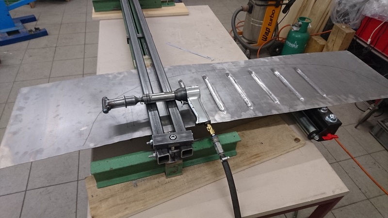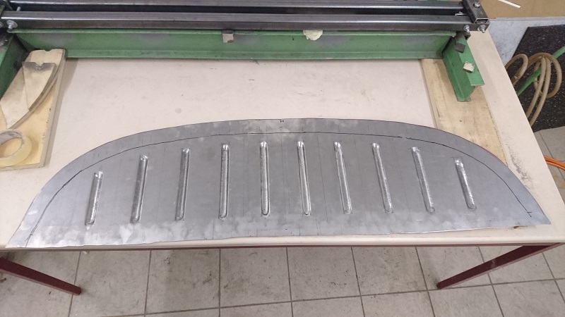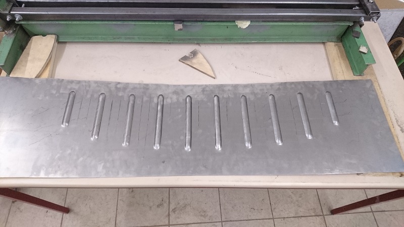 Die Hutablage wurde auf das Belch übertragen und mit ein paar Reststücken wurde das Sickenhämmerchen getestet.